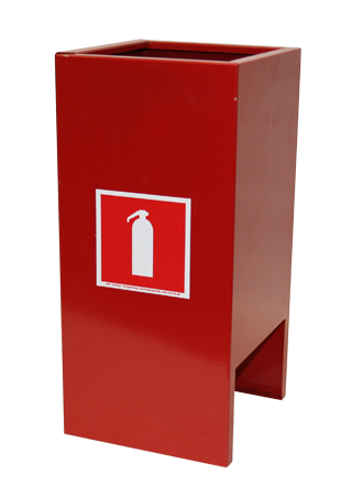 Подставка под огнетушитель П-10 изготовлена из металлического листа и окрашена эпоксидно-полиэфирной порошковой краской в красный (RAL 3020)