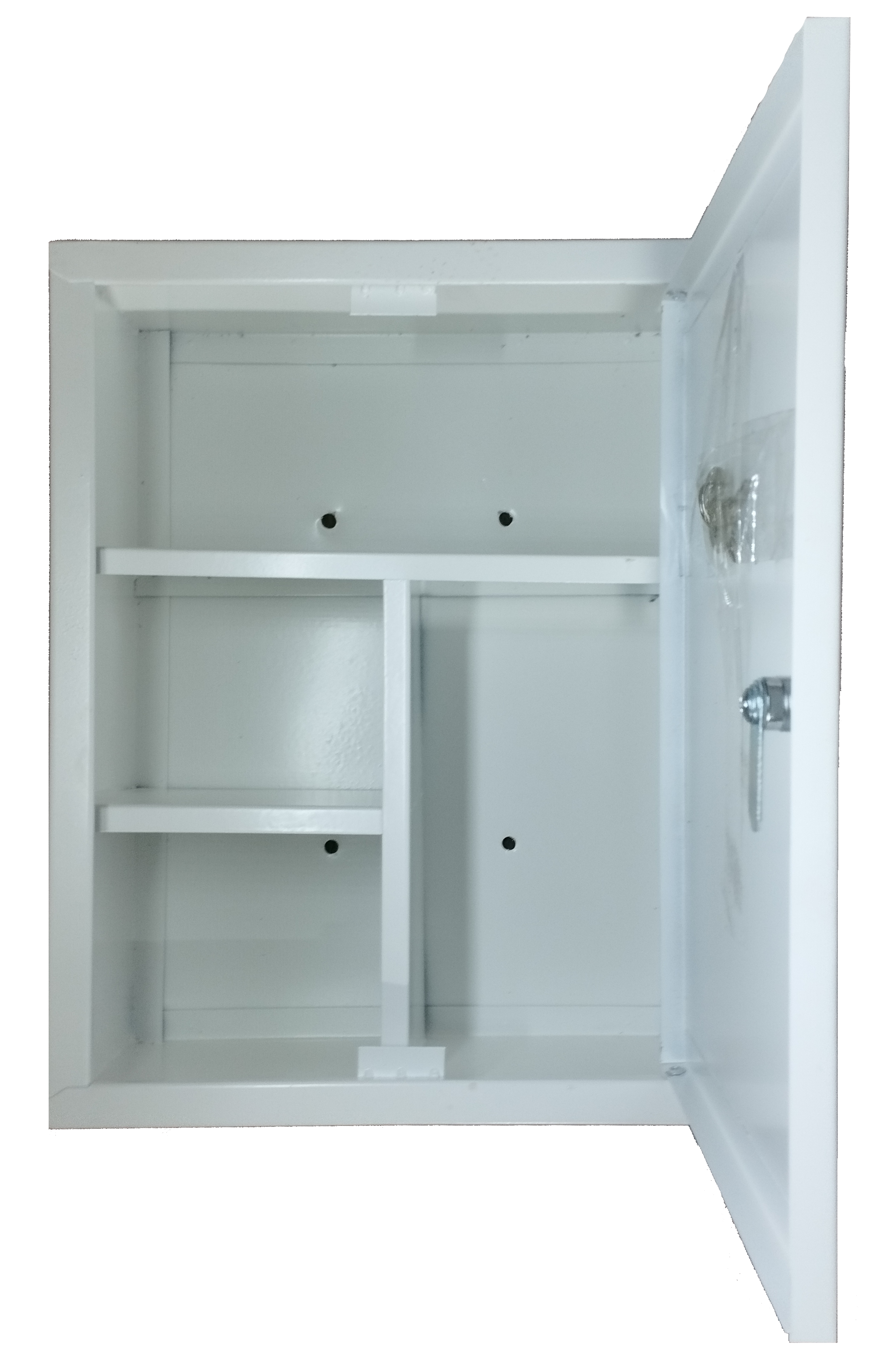 Настенная металлическая аптечка для медикаментов с почтовым замком.